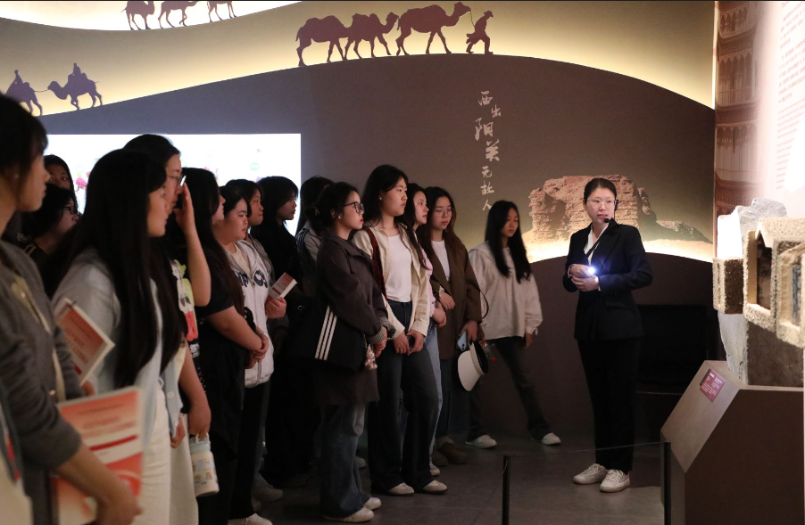“敦煌韵·思政行——场馆里的思政课”教学活动覆盖全校各专业,让学生在敦煌文化的浸润中领悟中国精神的深邃,感受文化自信的力量,深刻明白落后就要挨打的残酷现实,增强保护文化自觉。此次“场馆里的思政课”活动不仅是学生们深刻感受中华优秀传统文化的深厚底蕴,更是教育和引导学生从历史的智慧中汲取力量,坚定“四个自信”,对新时代青年时代责任与使命担当的深刻思考,以更加开阔的视野和更加坚定的步伐,迈向未来,一起在敦煌的韵致中,书写属于新时代青年的文化自信新篇章!