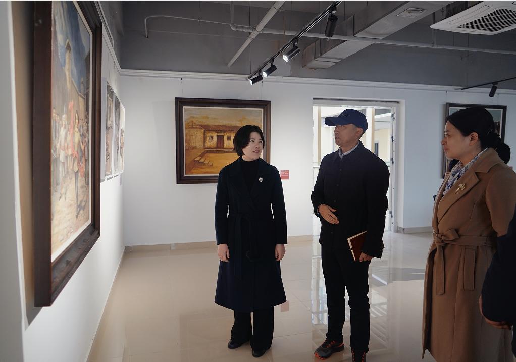 首先,新葡8883官网AMG官网院长石乾福汇报了我校思政课程开设、师资队伍建设、思政精品项目等方面情况,重点从新葡官网牵头的大中小学思政课一体化建设工作的政策精神、学校做法、工作推进、成果展示、“习语润心”思政品牌建设等特色工作进行了汇报。接着,一行人到思政课第二课堂——广安红岩英烈主题油画展厅参观。红色文化研究中心主任曹馨就油画故事背景、英烈事迹、创作构思等方面为随行领导进行了讲解。石乾福结合基地资源的使用、大中小学思政课一体化建设要求以及资源开发利用等方面进行了补充说明。洪丽等随行领导对学校充分利用红色资源开展思政教育的特色做法给予了高度评价,并要求在工作中要善于思考,敢于创新,要从教学内容、教学方式、学生体验等方面总结经验,完善不足,切实增强学生对思政课教学的体验感和获得感。